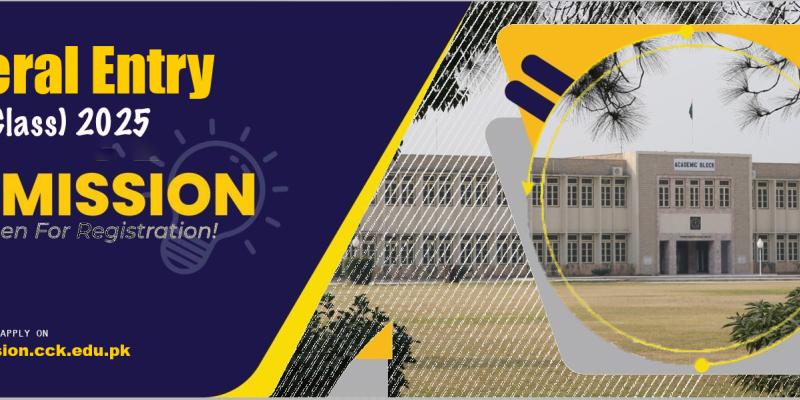 Cadet College Kohat invites online applications for admission to 11th Class for the academic session 2026. The registration process will begin soon through the official portal at www.cck.edu.pk. The application fee is Rs. 4,000/- (non-refundable), and the last date to apply is 15th April 2026. No hardcopy of the admission form is required.